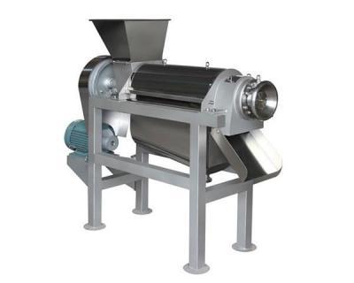工作原理是破碎后的果肉、汁、皮通過進料斗進入螺旋榨汁機,由于螺旋沿著料渣出口方向底徑逐漸加大而螺距逐漸減少,當物料被螺旋推進時,因螺旋腔體積縮小,形成對物料的壓榨。螺旋主軸的轉(zhuǎn)動方向從進料斗向渣槽方向看去,為順時針方向。原料加入進料斗中,在螺旋的推進下受壓,其壓榨的汁液通過過濾網(wǎng)流入底部的盛汁器,而廢料則通過螺旋及調(diào)壓的錐形部分之間形成的環(huán)狀空隙排出,調(diào)壓頭沿軸向的移動可調(diào)整空隙的大小。用于順時針(從設(shè)備的出渣槽向進料斗端看轉(zhuǎn)動手輪軸承座時,調(diào)壓頭向左,空隙即縮小、反之則空隙變大。)改變空隙的大小,即調(diào)整排渣的阻力,即可改變出渣率,但如果空隙過小,在強力擠壓下,部分渣的顆粒會和汁一起通過過濾網(wǎng)被擠出,盡管出汁增加,但汁的質(zhì)量相對下降,空隙的大小應(yīng)視用戶具體工藝要求而定。從而達到汁與渣自動分離的目的。