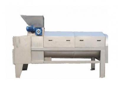 石榴從進(jìn)料斗進(jìn)入上壓碎裝置,上壓碎裝置將石榴壓開(kāi),下壓碎裝置再次將石榴擠壓,經(jīng)過(guò)兩級(jí)擠壓的石榴已基本皮籽分離,并落入分離裝置,石榴籽從篩孔落下,皮從尾部排出, 籽及汁用另配的螺桿泵送至下道工序。