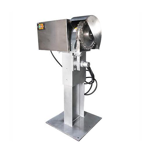 椰子剝殼機(jī)是將去棕后的椰子最外層堅(jiān)硬的椰殼去掉,此款剝殼機(jī)是一種半自動(dòng)化設(shè)備,機(jī)器主要由圓形刀盤、硬質(zhì)合金刀頭、楔形頂料刀及減速電機(jī)等組成。機(jī)器工作時(shí)候,人工手握去棕椰子將其前段的胚芽口位置對(duì)準(zhǔn)楔形頂料刀,下壓下去,此時(shí)轉(zhuǎn)動(dòng)的剝刀盤與楔形頂料刀對(duì)放入其中的椰子形成了擠壓剝除力,從而順利將椰殼從椰肉剝離開(kāi)。